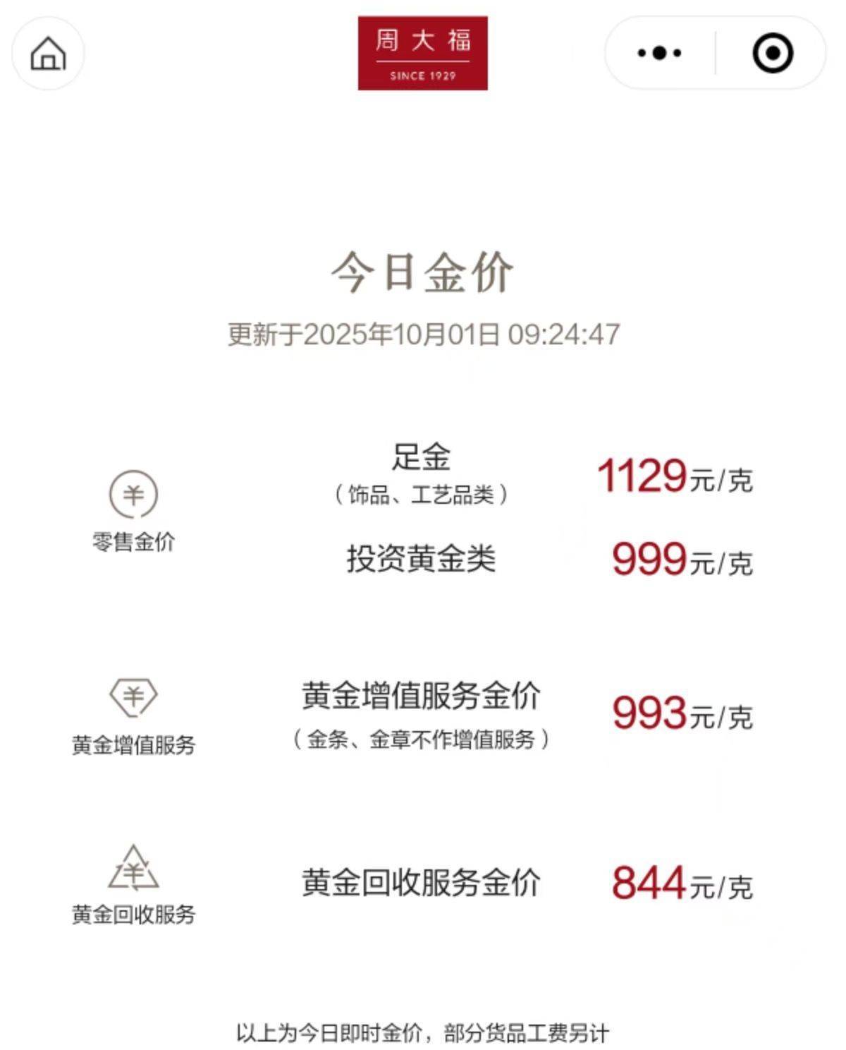 国内多家品牌金饰价格跟涨。其中,周生生足金饰品价格涨至1130元/克,周大福足金饰品价格涨至1129元/克。